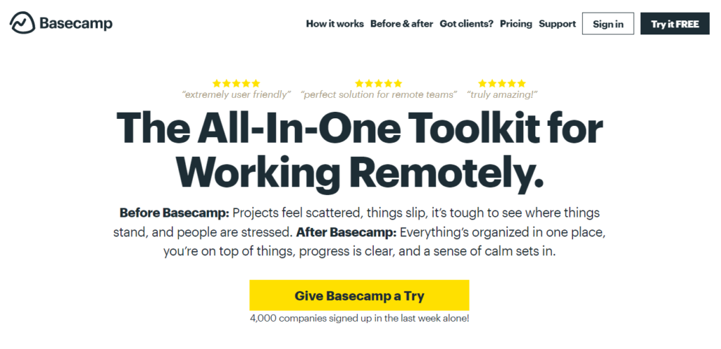 Basecamp is a real-time collaboration tool that will help teams to stay in touch with each other.