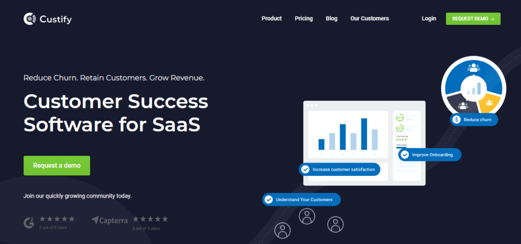 Custify can assist SaaS companies in managing customer engagement and churn rate in the context of the recurring revenue model. You can easily get many tasks done through Custify. They are KPI tracking, activity generation, task assignment, client communications, and audience segmentation.