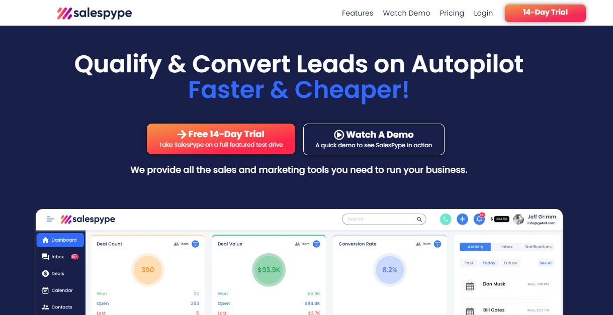 - Track deals, manage conversations, oversee sales reps for better relationship management