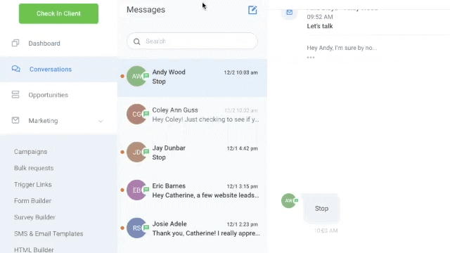 Your clients will be able to reply to the leads via text messages, emails, or Facebook messenger, bringing all lead conversations into one unified feed.