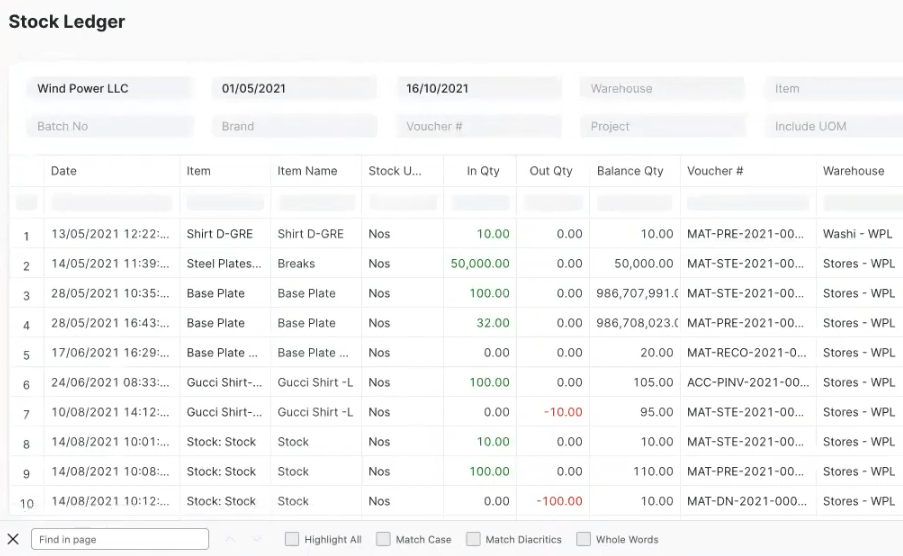 You can see a complete stock ledger report stating what is in quantity, what is quantity, what is balanced quantity, with which voucher references received, et cetera.