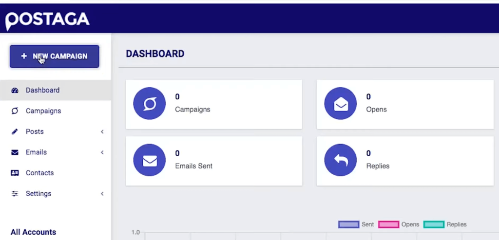 Let’s get started on creating a new campaign. And actually, what I like about Postaga is it’s pretty easy to set up. So, what you can do is click on a new campaign.