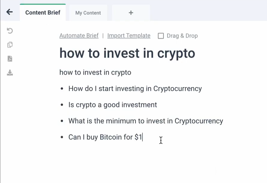 When you’re ready to create, you can take anything you want from the content brief section by simply copying the headings and pasting those headings into the “my content” section”.