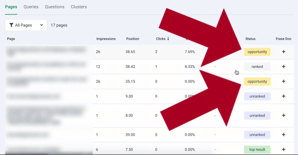 You can see which pages are ranking or what queries you ranking for, or what questions you ranking for, and even what keyword clusters you’re ranking for.