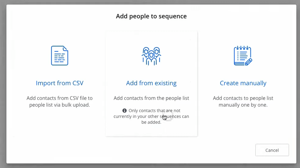 Once the schedule is selected you can add contacts to your sequence.