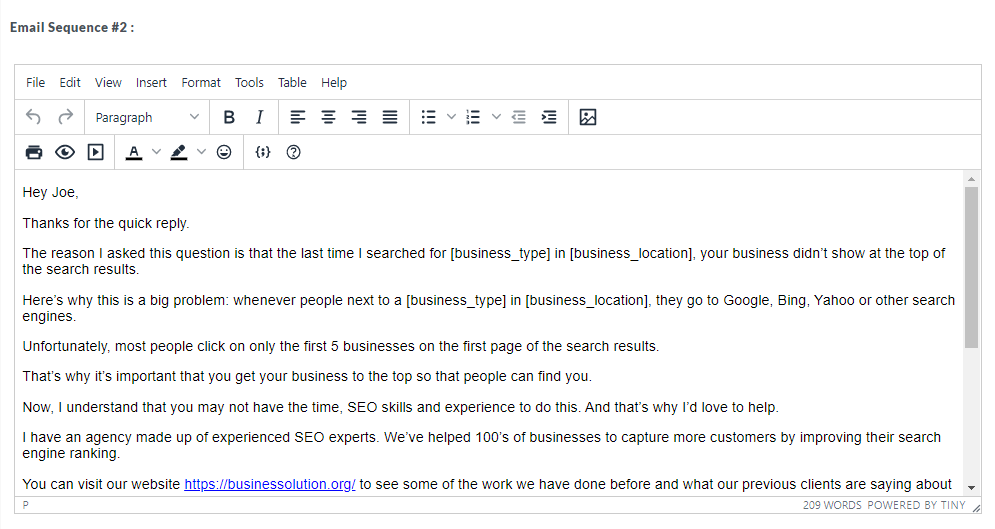 And as you can see there is a name that I just provided but, I would recommend these to become variables like [firstname], [business_type], etc.