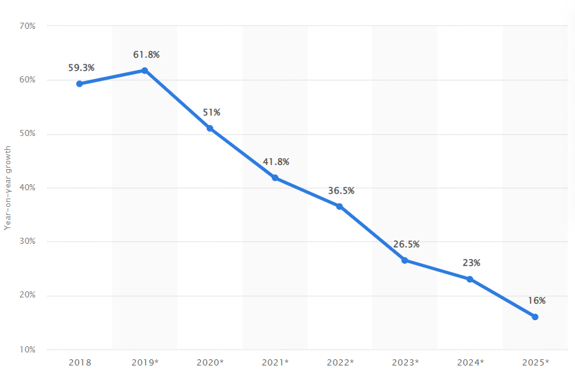 The NLP market is anticipated to grow from around three billion dollars in 2017 to about 43 billion in 2025, a nearly 14-times increase over its 2017 size (Statista)
