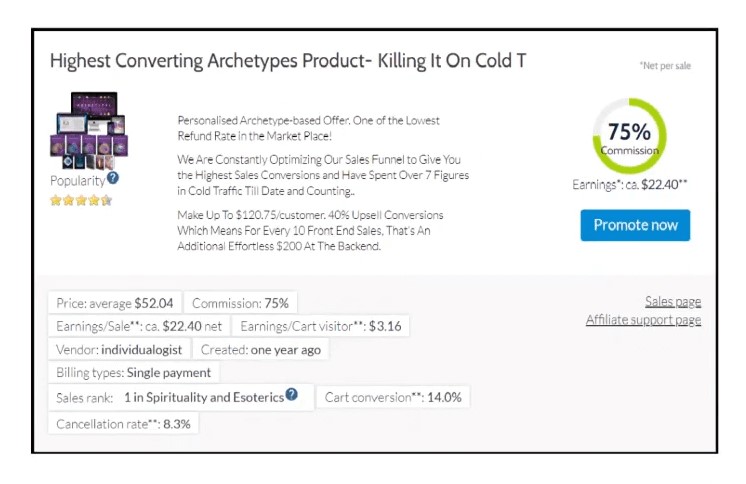 This product is going to pay $500 for each sale that you make. A 50% commission from a product costs $1,000. In other words, this is a high-ticket offer located in the make money online niche.