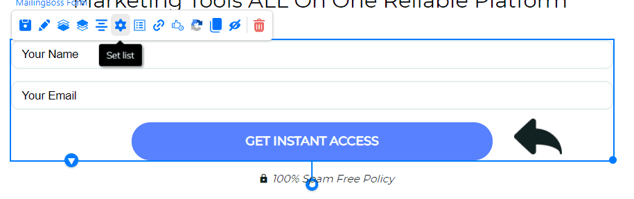 Let’s select the email marketing form that we’ve just created and it’s going to open directly the Mailingboss list.