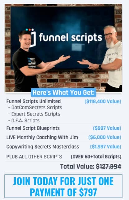 This is still a bargain considering that ClickFunnels the cheapest plan is $99/month and to get access to their Funnel Scripts software you would have to pay an additional $797!