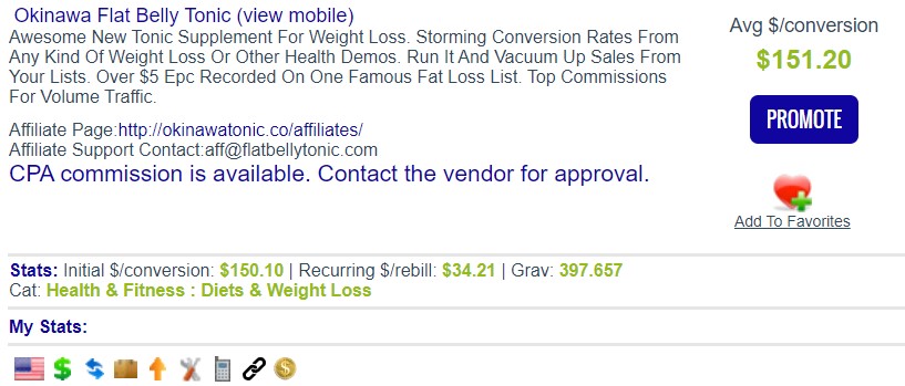 Then I can search for “lose weight”, and they have multiple products in here related to losing weight, like this one -“Okinawa Flat Belly Tonic”.