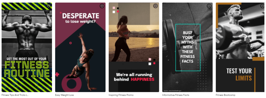 So I can search for fitness and Invideo shows me lots of YouTube shorts templates perfect for my video.