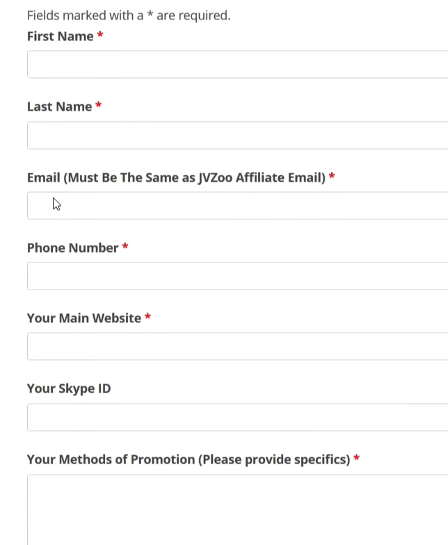 As you can see it’s asking your name, email, Skype ID, methods of promotion, and your website.