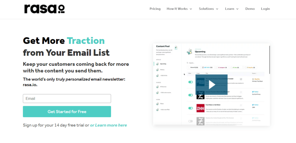 Rasa.io boasts personalized AI-powered email templates that create lead generation campaigns from scratch based on behavior data gathered from users who signed up for your mailing list alongside any other CRM information at your disposal, giving you access to metrics such as time spent browsing different parts of your website, average time between visits and much more.
