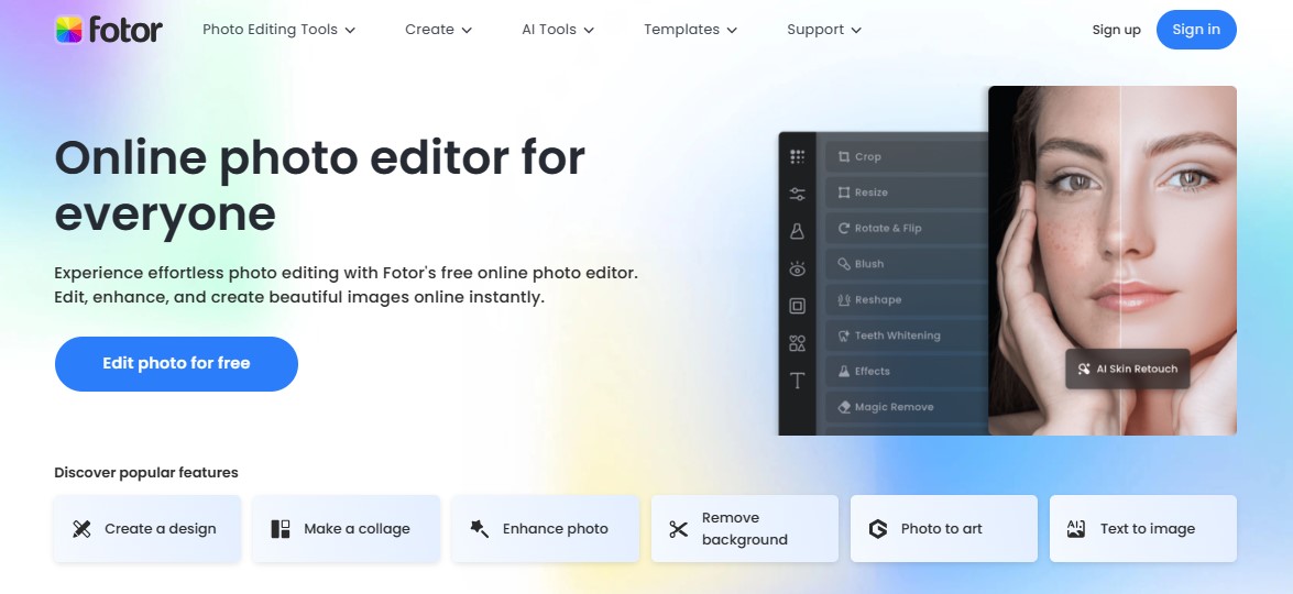 Canva is one of the most easy to use free online photo editors thanks to its drag and drop interface. You just need to simply find or import your photos into templates, social media graphics, posters, and a lot more.