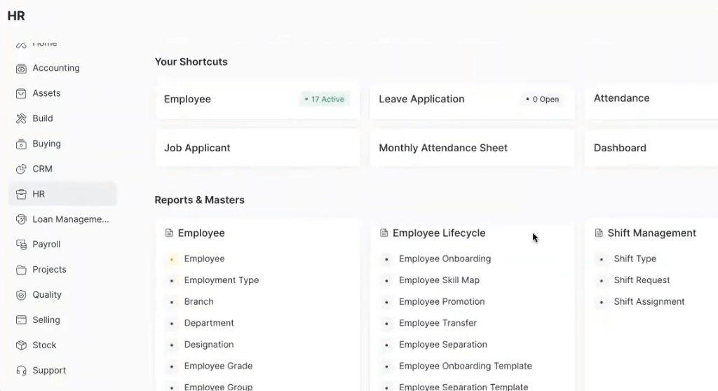 Then in HR, we can have all our employee-related activities managed whether it is employee onboarding or exit, the complete employee life cycle is taken care of.