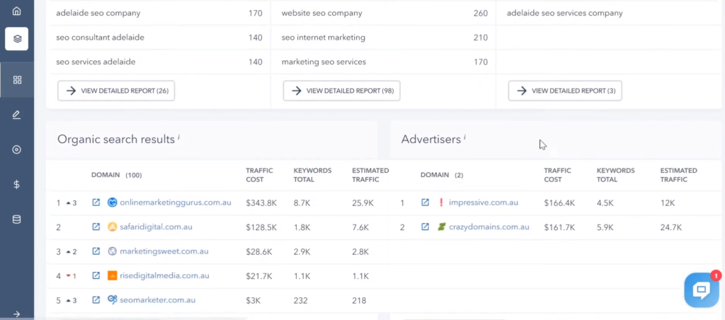 Next up is SEO competitor research. Here you can perform competitive research and uncover your competitor’s most powerful SEO and PPC campaigns.