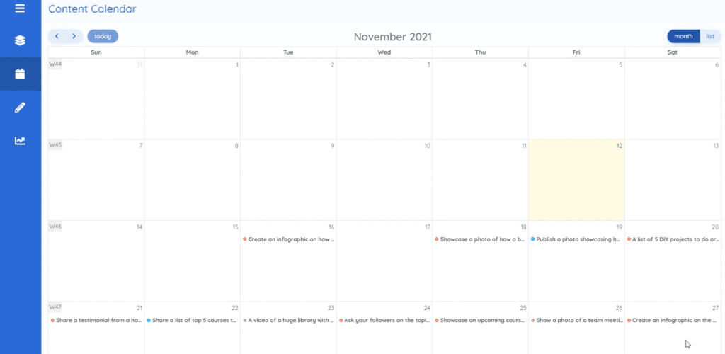 The next feature that stands out the most in Predis is the AI content calendar that enables you to schedule your content in advance so every time you generate posts it will add them to the content calendar unless you take them off.