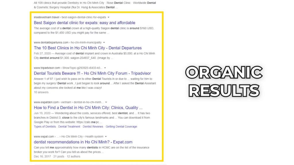 Now beyond SEO, there’s also Google Search Ads. So it’s not just the “free organic listing”, there are also ads that usually display above that.