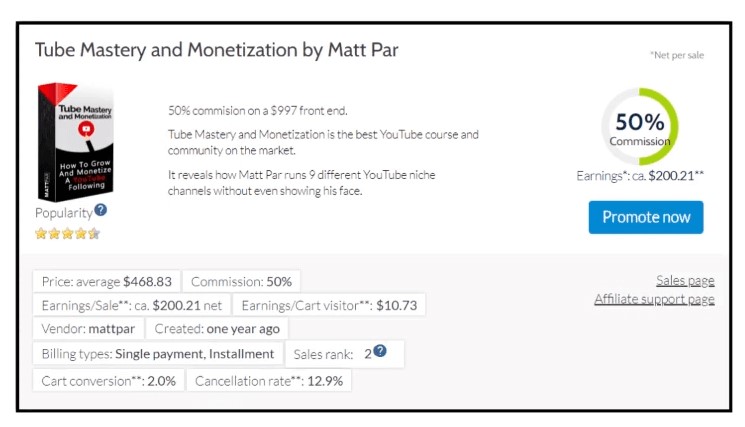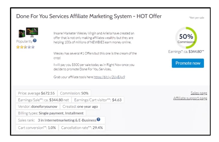 This product is going to pay $500 for each sale that you make. A 50% commission from a product costs $1,000. In other words, this is a high-ticket offer located in the make money online niche.
