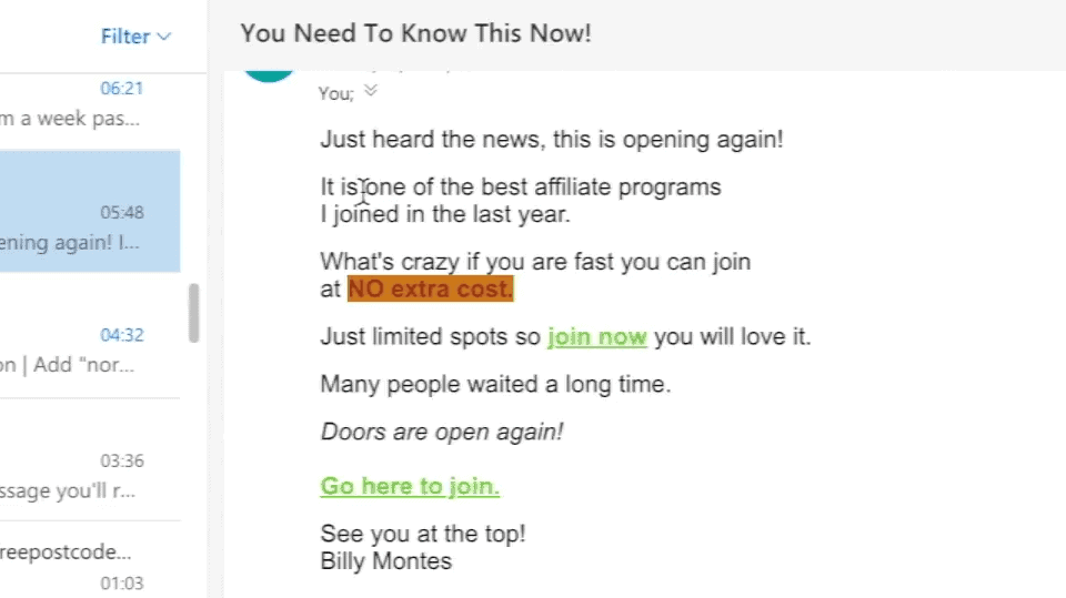 So as you can see affiliate email that they send out to their list and this leads to my funnel.