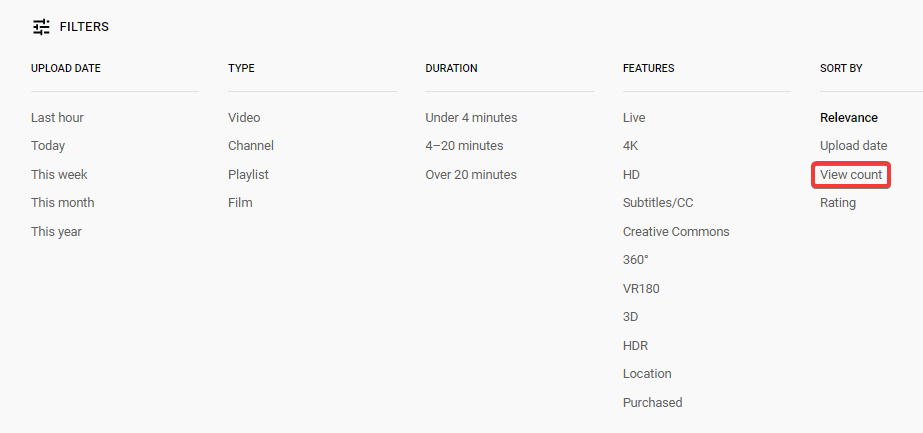 For example, if you’re in the fitness niche, you can type in fitness workout and filter by view counts.