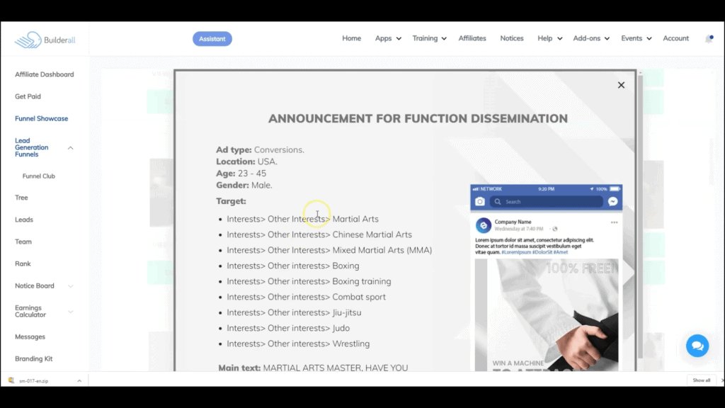 All you have to do is simply download the funnel that you want to promote and you’ll get social media marketing content to start posting all across the social media platforms and ad descriptions.