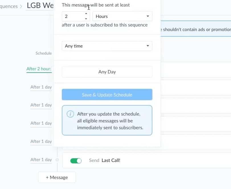 Then for the second message, you can have that the next day or maybe you can have it two days later, and the next day, and so on and so forth.